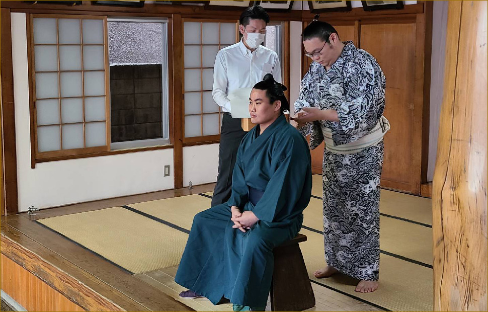5月24日(月)本日、稽古場上がり座敷にて吉村の断髪式を行われました。