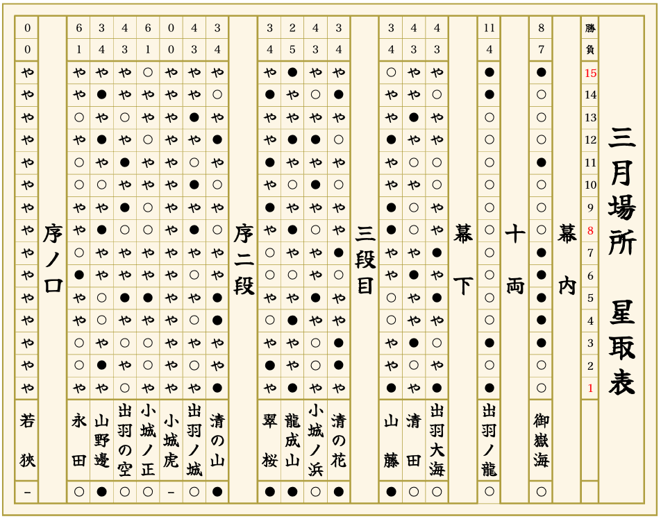 2026年 三月場所星取表