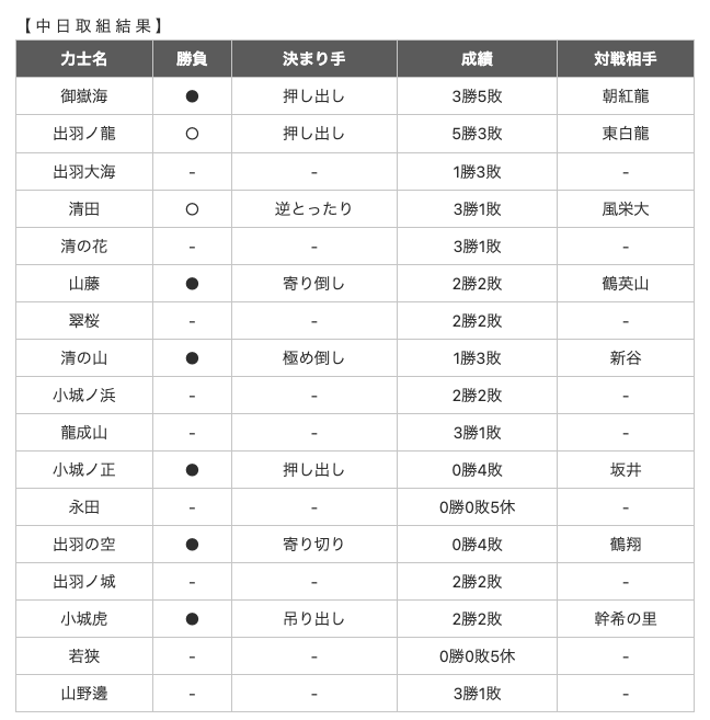 大相撲一月場所取り組み結果 六日目
