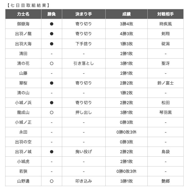 大相撲一月場所取り組み結果 七日目