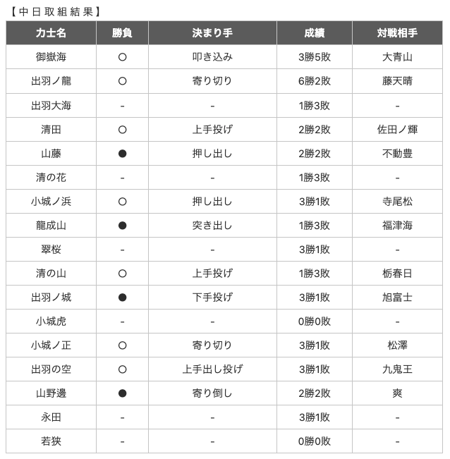 大相撲三月場所取り組み結果 中日