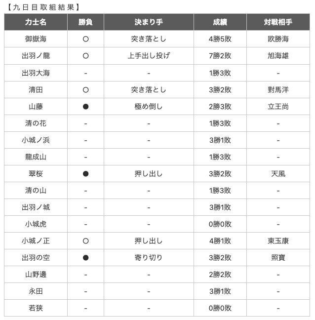 大相撲三月場所取り組み結果 九日目