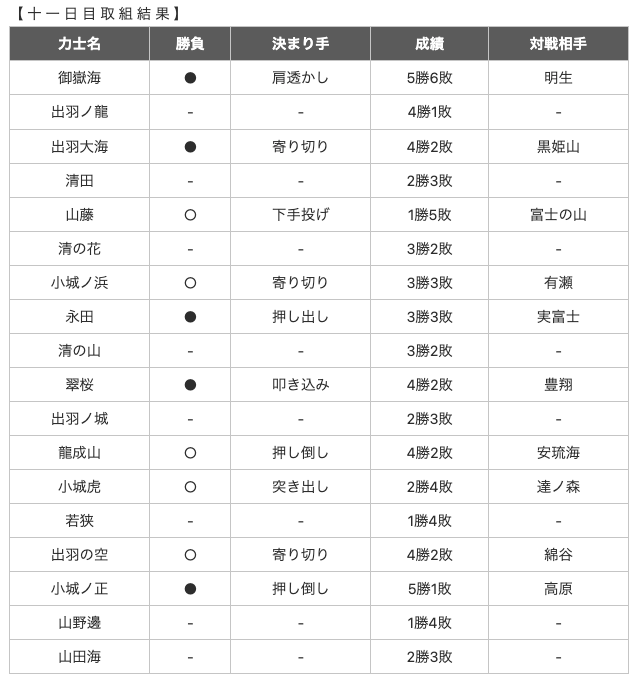 大相撲十一月場所取り組み結果 十一日目