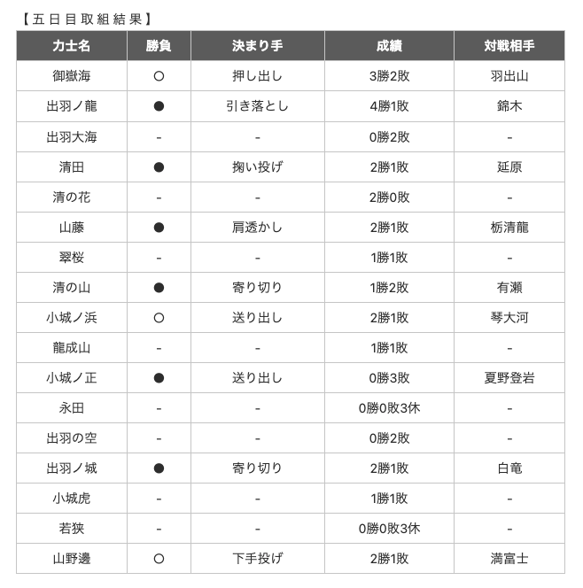大相撲一月場所取り組み結果 五日目