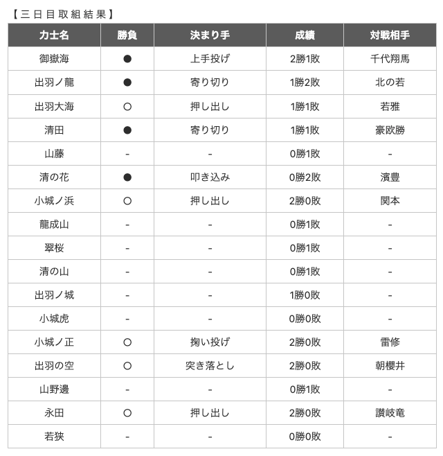 大相撲三月場所取り組み結果 三日目